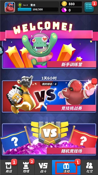 进入【活动界面】后,你可以选择参加“新手训练营”“竞技挑战赛”“随机竞技场”等多种不同的活动。