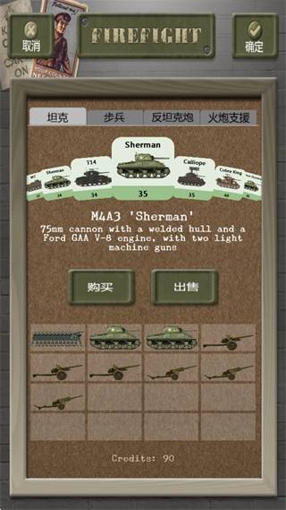 3、进入购买环节,选购军队、坦克等武器装备,完成后点击确定。