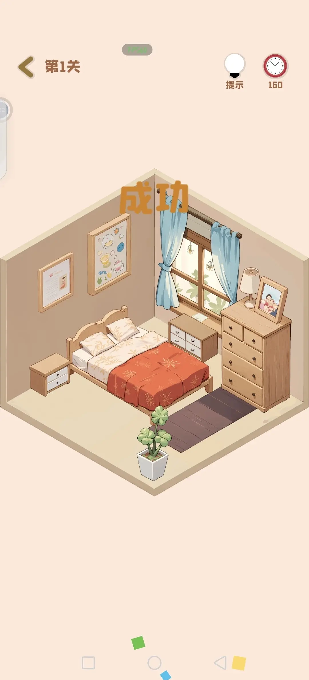 这是一款相当有趣的模拟建造类游戏,画面风格十分温馨治愈。玩家仅需通过摆放各类物件就能解锁游戏乐趣,但要注意尽量先往场景的四周区域放置物品,这样可以避免后期因空间不足而无法摆完所有物件。同时,这也是一款自由度很高的游戏,关卡没有固定的标准答案,玩家完全可以按照自己的想法和喜好来设计房屋,在这里尽情打造专属于你的理想之家。