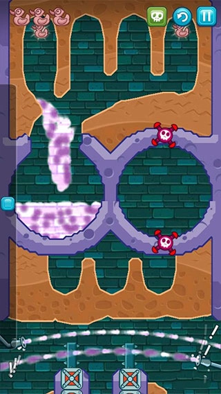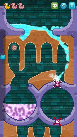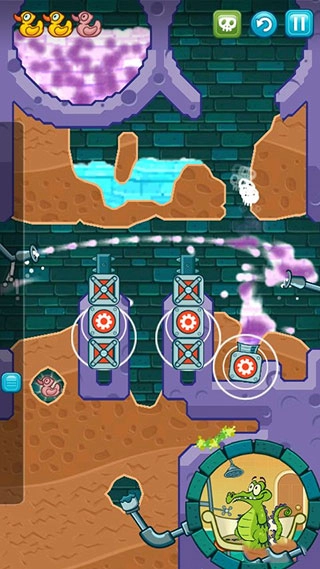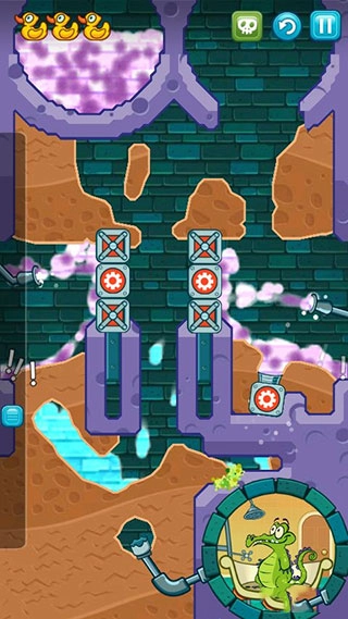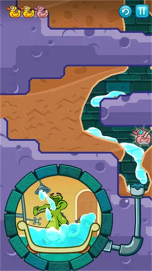 接下来只要让足量的水流顺利通过小鳄鱼浴室的管道,我们就能完成这一关卡了。