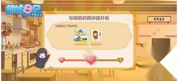 每个等级的亲密度,都对应着一项尚未解锁的新功能呢~亲密度越高,桃桃们能解锁的互动玩法就会更丰富哦!像亲密度到4级时,就能和胡桃聊聊天啦;到6级的话,就能给胡桃安排上大家超期待的打工卡(把它放进胡桃的包包里,说不定就能打工攒点零花钱啦~);要是亲密度达到7级,还能在便利店买小游戏卡带,和胡桃比试比试谁才是游戏能手!