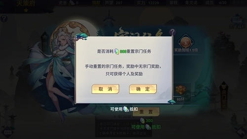 另外宗门任务每日可重置一次,只是重置后的任务既无宗门奖励,也无个人奖励。
