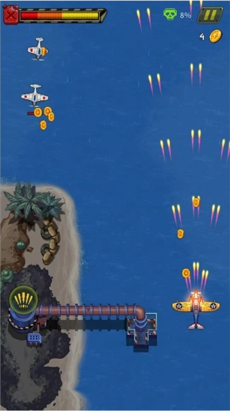 准备进入战斗!你可以通过滑动屏幕来操控战斗机的移动方向,锁定前方的敌机进行射击。成功击败敌机后,就能收集掉落的金币啦。