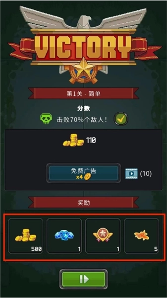 通关后,可获得金币、钻石、勋章等奖励,