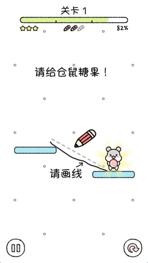 进入关卡后,玩家得通过画线的方式让仓鼠获取糖果,而且每一关里,画线的次数和长度都存在限制。