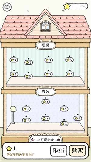 4、星星能够在主界面通过点击装修按钮来解锁房间内的装饰,每个装饰解锁所需的星星数量各不相同。