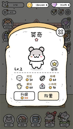 5、金币可用于角色升级,也能通过抽奖解锁新的仓鼠角色。