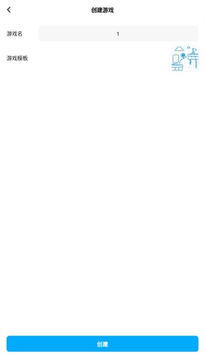 3、然后输入你的游戏名称,再选择游戏模板就可以点击创建开始做游戏了。