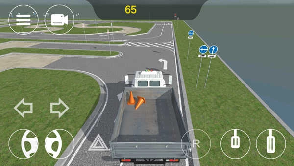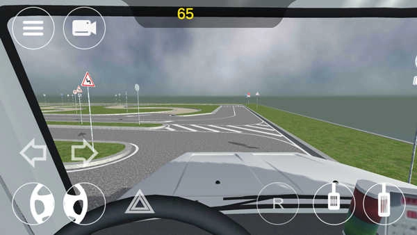 进入实操界面后,屏幕左下方为虚拟方向盘区域,右下方为动力控制区,车辆会依据操作即时做出转向、加速或减速反应;