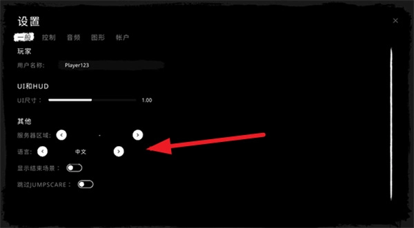 直接启动游戏后,找到language功能选项,点击最右侧的按键就能循环切换语言,直到切换为中文即可。