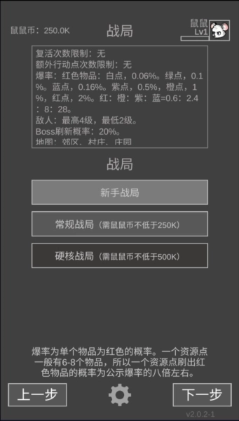 《老鼠大冒险》是一款休闲卡通风格的文字策略游戏,它以文字形式呈现大逃杀玩法。在手机版游戏里,玩家需要选择合适的开局地点收集武器、装备、药品等资源,之后挑选人少的区域逐个击败敌人,最终赢得胜利。
