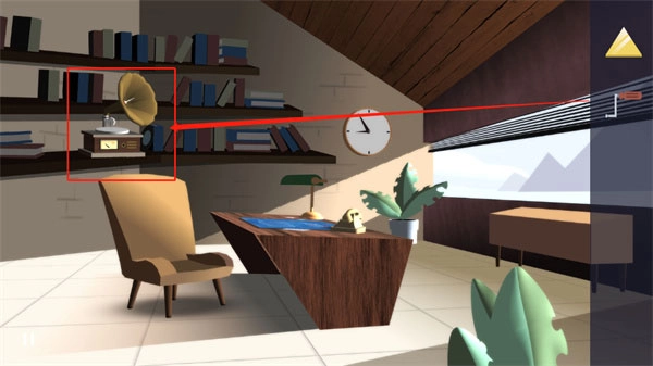 进入客厅二楼左侧的房间,打开留声机后发现缺少一个摇柄,将唱片放置好,然后摇动它。