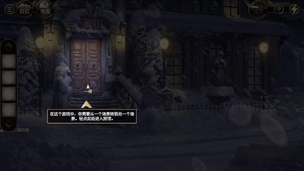在这个游戏里,你得从一个场景切换到另一个场景,只要轻点门,就能进入旅馆了。