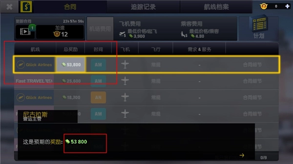 在签署每一份合同之前,玩家能够提前评估和不同航空公司合作所能带来的收益状况。