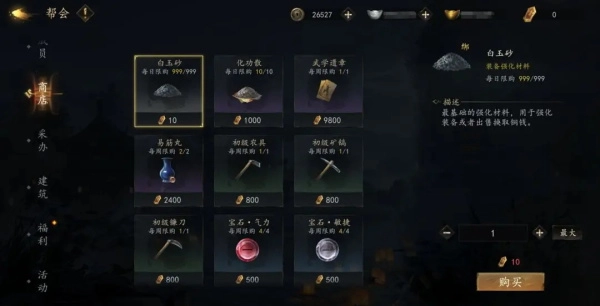 当前版本新增了全新的帮会商店,玩家可消耗帮贡来购买各类道具。