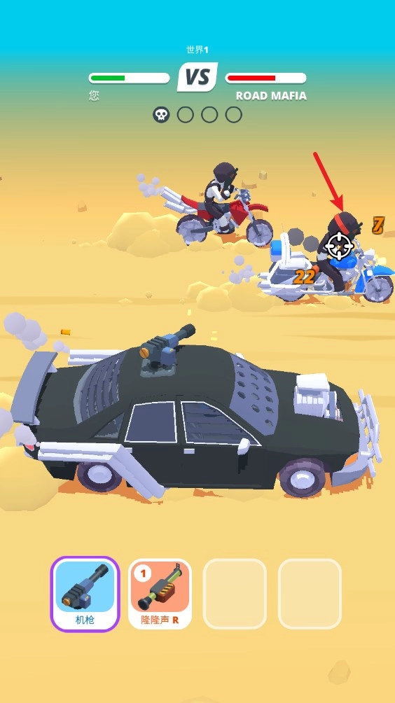 沙漠骑手是一款集射击与赛车驾驶于一体的休闲闯关游戏。在游戏里,玩家将驾驶赛车于沙漠之中和其他对手进行激烈追逐,行驶时可以架起武器攻击敌人,通过瞄准射击来消灭对手,同时还要躲避敌人的撞击与反击。该游戏采用竖屏模式,方便单手操作,玩法简单又爽快,关卡节奏紧凑,一局游戏几分钟就能完成。玩家需要熟悉长按屏幕攻击敌人、松开躲避攻击的操作方式,灵活运用加速与刹车技巧,并且合理借助地形优势,比如在弯道或沙丘后隐藏起来,以此躲避敌人的火力。