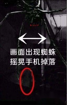 画像消失后游戏画面会卡主,然后在楼梯上出现一个人影,之后出现一个体积很大的蜘蛛,我们不停的摇晃手机将蜘蛛摇掉。