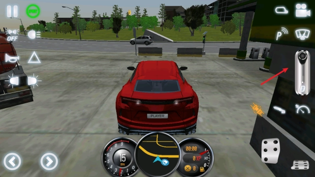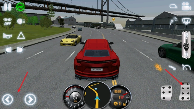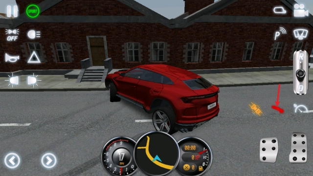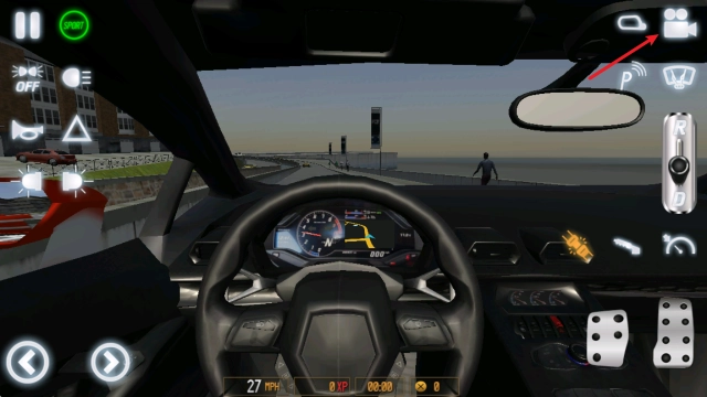 进入场景后,点击左上角的sport按钮启动引擎,再把右侧的档位推至D档。