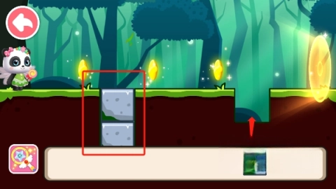 在第二关,得用两个正方形石块把道路上的坑填上。