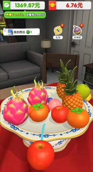 游戏内设置了各类红包任务,像合成特定数量的高级水果、达成指定果盘要求等。