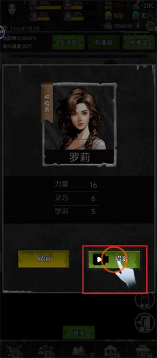 5、此外,还将需要不断的进行角色的招募,不同的角色将会有着不同的个性,选择好角色后点击【招募】按钮即可。