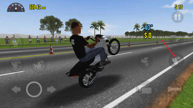 2、进入场景后,点击右侧的车把手可以开始加速前进,左侧的方向键控制转向。