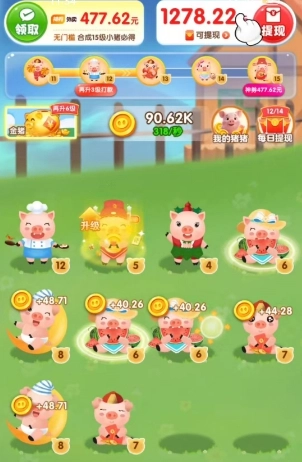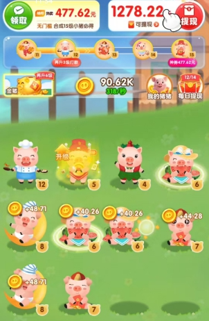 3、游戏里配备了自动合成升级的功能,能帮你解放双手,让你轻松合成出可爱的小猪猪,进而赢取丰厚的合成奖励。
