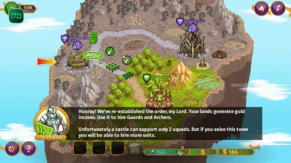 6、攻占一座城堡后,你能够在那里训练士兵,通过升级城堡来提高这些行动的效率,还有其他可进行的操作等等。