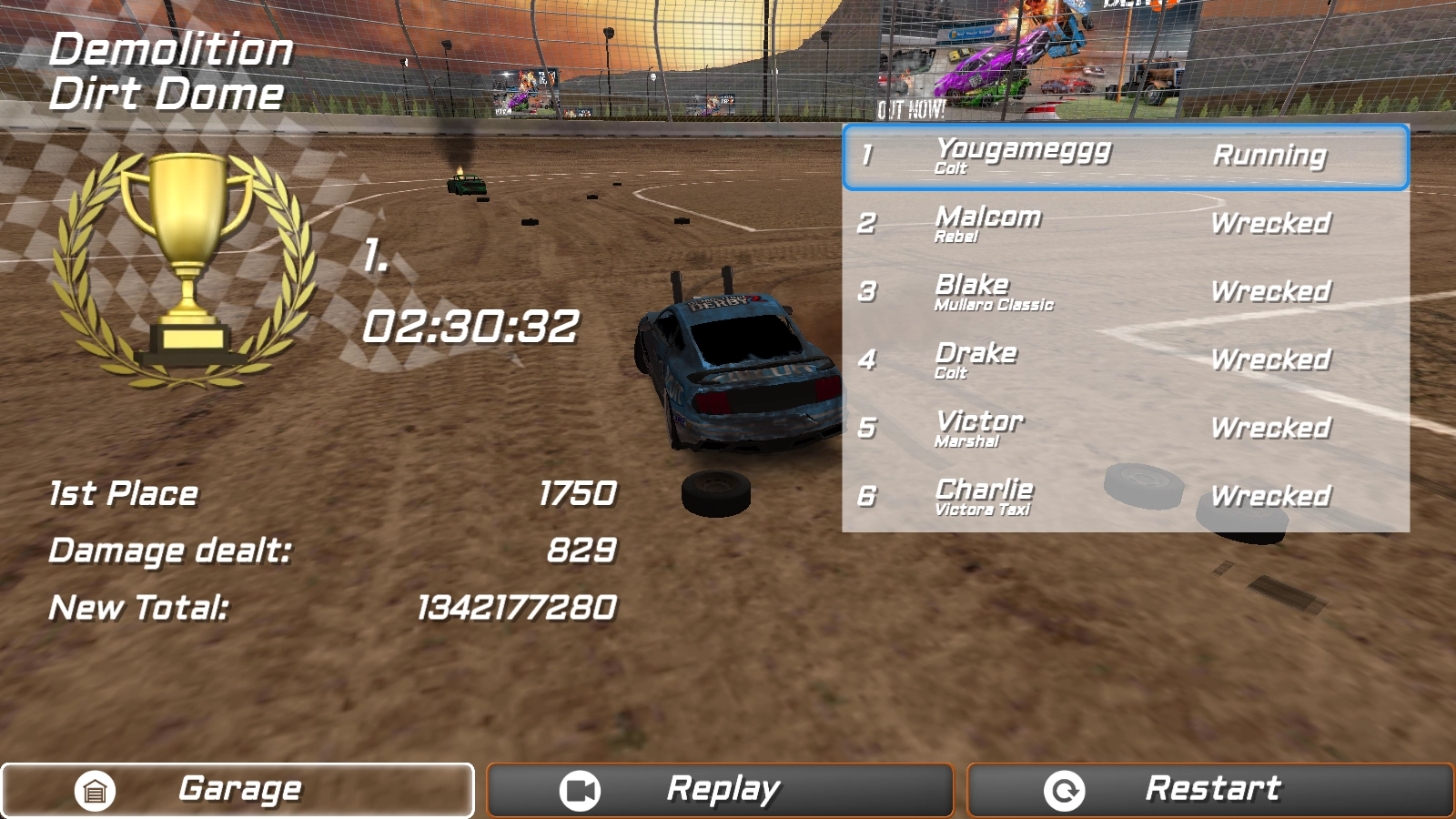 8、当其他车辆全部被撞毁之后,就会结算最后的奖励。