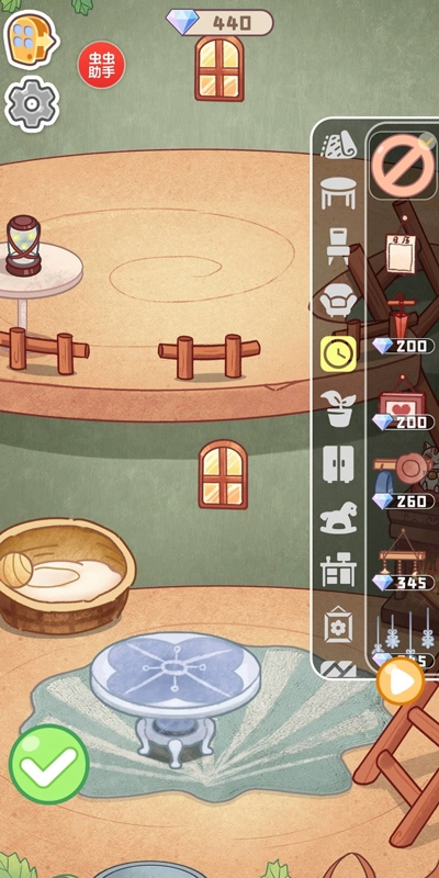 2、一开始空间里什么都没有,得去收集更多有意思的家具,通过持续消除来解锁全新的家具。