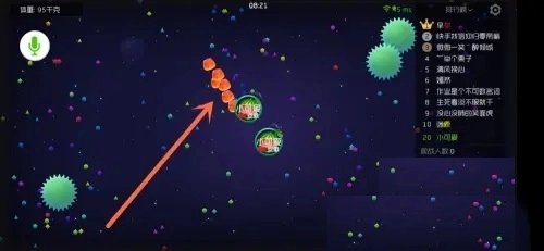 3、随后将变大的球球分成多个球球,要想快速合体时,应该先点击下中间的一个球,接着点击下吐球,使中间的球球变得更大。这也就是所谓的中吐。