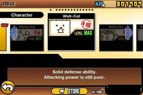 将画面左下角的“土豪猫”增值,即可加速累积金钱的速度并增加战斗中可持有的金钱。使用画面右下角的“猫咪炮”则是可以一口气攻击敌人并推进战线,不过发射“猫咪炮”前需要一段时间充电。