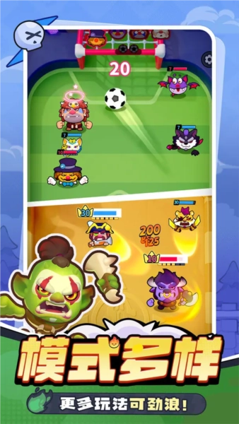 除了经典对战玩法,游戏还加入了足球模式、淘金玩法等趣味十足的搞笑模式,场景中设置的随机机关让每一局对战都充满悬念,使得游戏兼具竞技性与娱乐性。