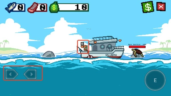 2、前往最左侧的钓鱼台,按下E键开始钓鱼。钓鱼线会自动下沉,可通过左右方向键调整其方向。让鱼钩碰到鱼并造成伤害,当伤害累积到足够程度时,就能将鱼钓上来。