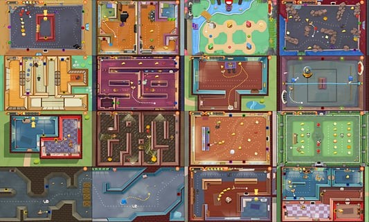 来到第三关,间谍鼠碰上了两只小黄猫。白色虚线依旧是这两只猫咪的移动轨迹,玩法和第二关差不多,都是跟在猫咪身后,找准它们的视线盲区来隐藏自己不被发现。实际上,只要摸清楚时机和猫咪的移动规律,就能轻松躲开小猫们的追踪,顺利抵达放置奶酪的地方。