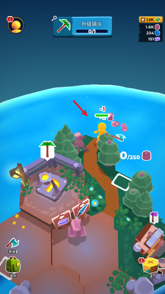 2、游戏中玩家将会用自己的镐来无限的采集资源,能够开凿岩石、挖掘矿物和开采黄金,还能通过升级来提升效率。