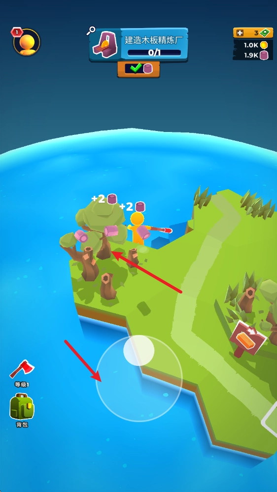 1、在游戏里,玩家只需拖动屏幕就能控制移动,当靠近资源时就可以自动采集。