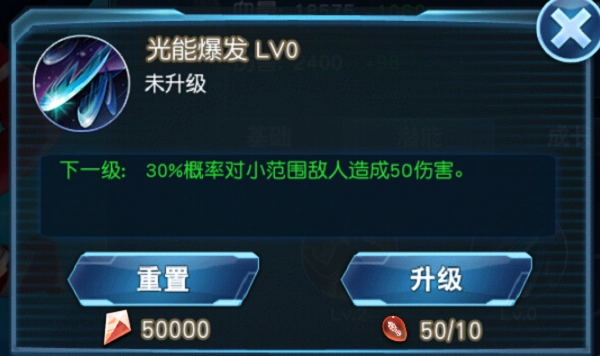 释放技能时几率触发,对技能命中敌人造成25%光能伤害,增加技能伤害,在三四潜能未开放的时候,主要升级这个潜能。