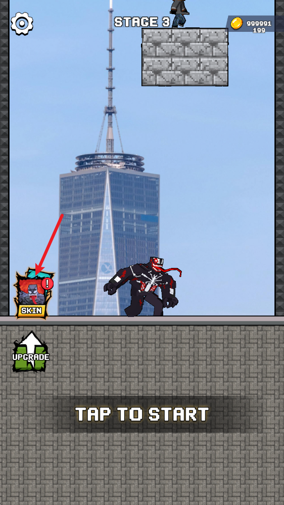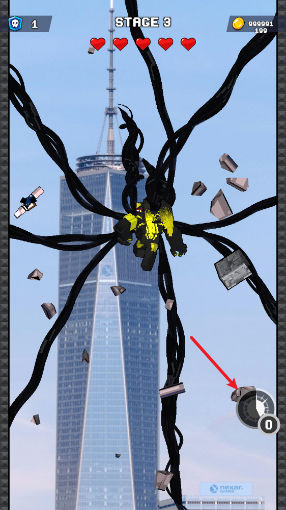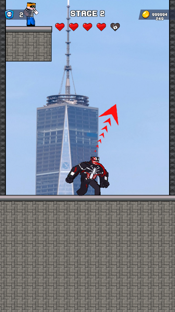 进入游戏后,拖动屏幕即可调出红色箭头,借助它能够掌控毒液的跳跃方向。