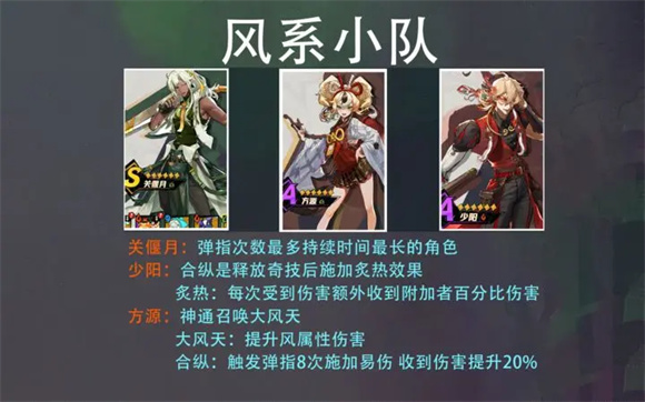 3、方源:施展神通召唤大风天 大风天效果:提升风属性伤害;合纵效果:触发弹指8次后施加易伤状态,使目标受到的伤害提升20%