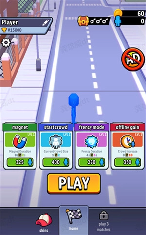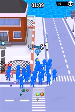 拥挤城市(Crowd City)是由Voodoo开发的游戏。游戏开始时,玩家需要挑选一种颜色的橡皮人角色,接着在地图里持续击败其他颜色的橡皮人,以此逐步壮大己方的队伍规模。只有最终战胜所有对手,才算顺利通关。而且挑战的难度会不断提升,所以在对战过程中务必注重策略的运用。