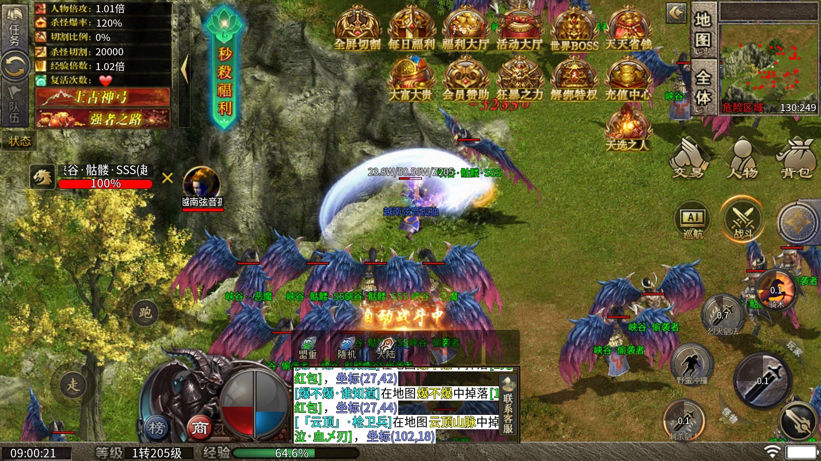 1、白嫖玩家上线跟着强者之路任务,通关每个大陆,一切全看脸,小怪爆终极,实现装备追梦。