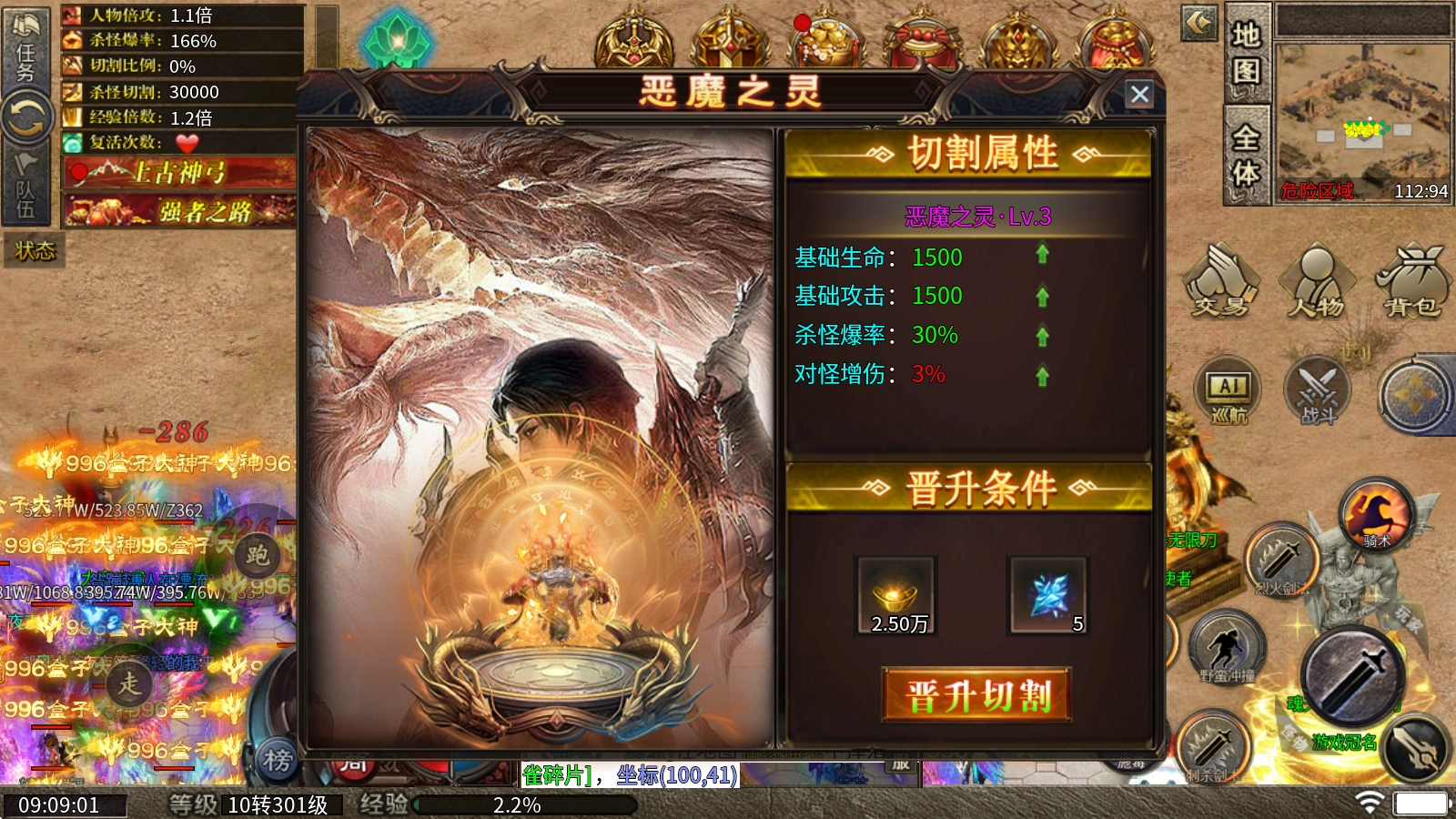 4、恶魔之灵:消耗切割碎片和元宝提升,提高爆率和对怪增伤。