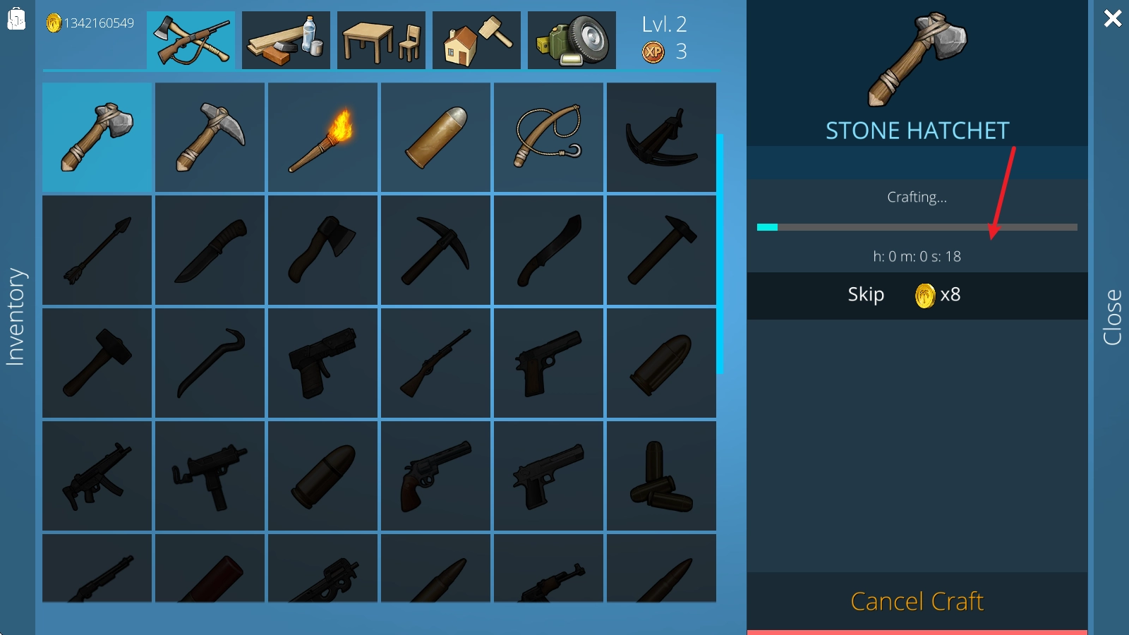 3、随着等级的提升,将会解锁更多丰富的武器,用这些武器去狩猎武器,获取丰厚的食物资源,这是生存的基本。