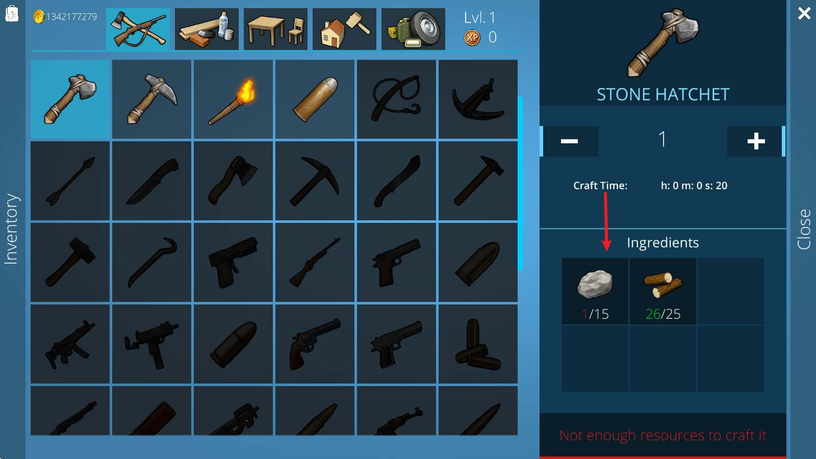 4、接下来我们就能运用制作完成的工具了,像这里的石斧就可以派上用场。