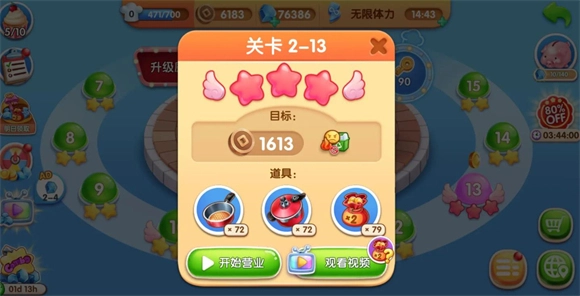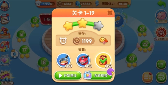 3、选好餐厅后可以选择不同的关卡,选好关卡后点击开始进行闯关。