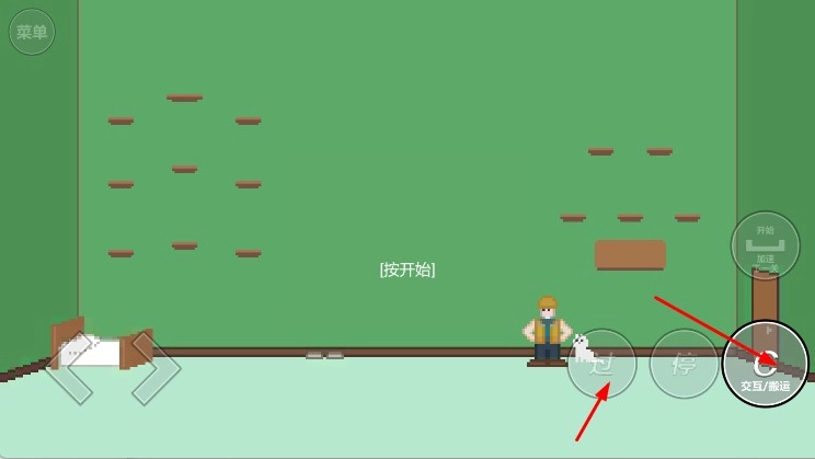 进入游戏后,在初始房间场景中,操控角色,借助左侧的方向按键进行移动,同时搭配右侧的“过”“停”等交互按钮,合理规划行动步骤。