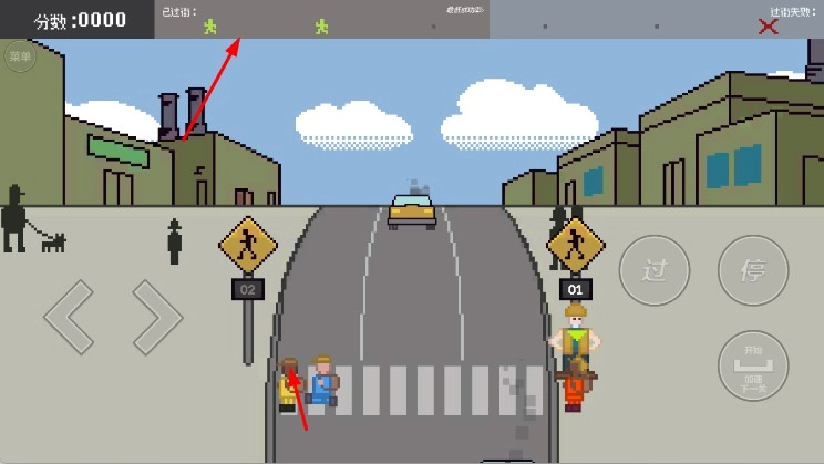时机判断与操作执行:在车流中出现安全间隙时,点击“过”按钮引导队伍前进;若遇突发车辆,需及时点击“停”按钮暂停,以保障小朋友安全,防止队伍分散在马路中间。