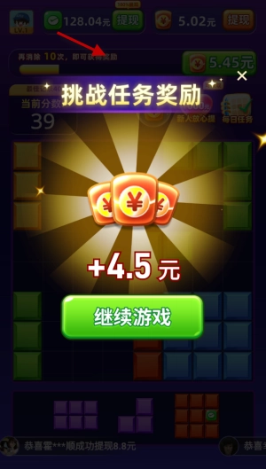 每一次消除都会获得相应的积分与红包,要是达成连消或者一次性消除多行的话,还能拿到更高的积分和更多的红包呢!