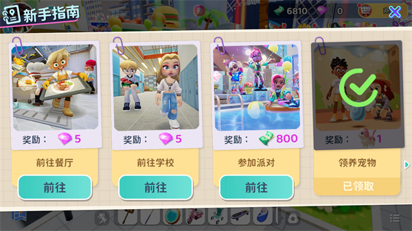1、找到左侧中间位置的新手指南并点击,然后从中选择前往餐厅的任务。